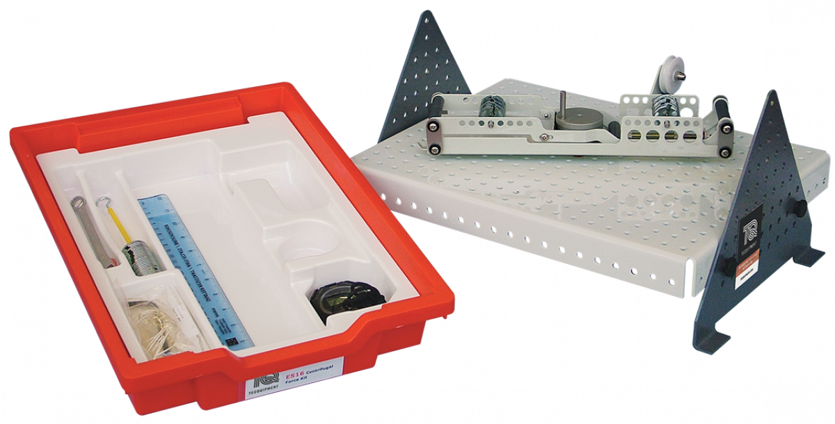 TecQuipment's Centrifugal Force Kit (ES16) demonstrates the relationship between centrifugal force, radius, and velocity of rotating masses.